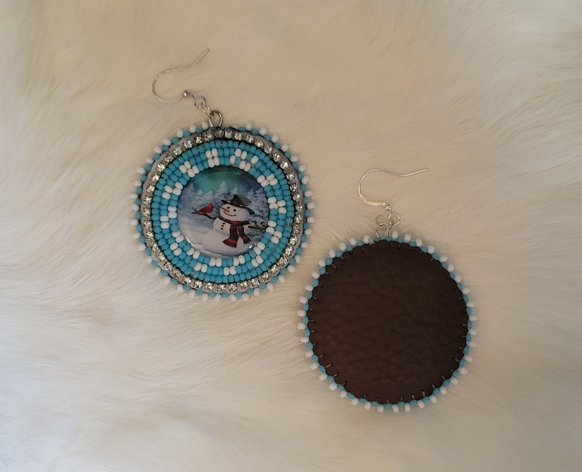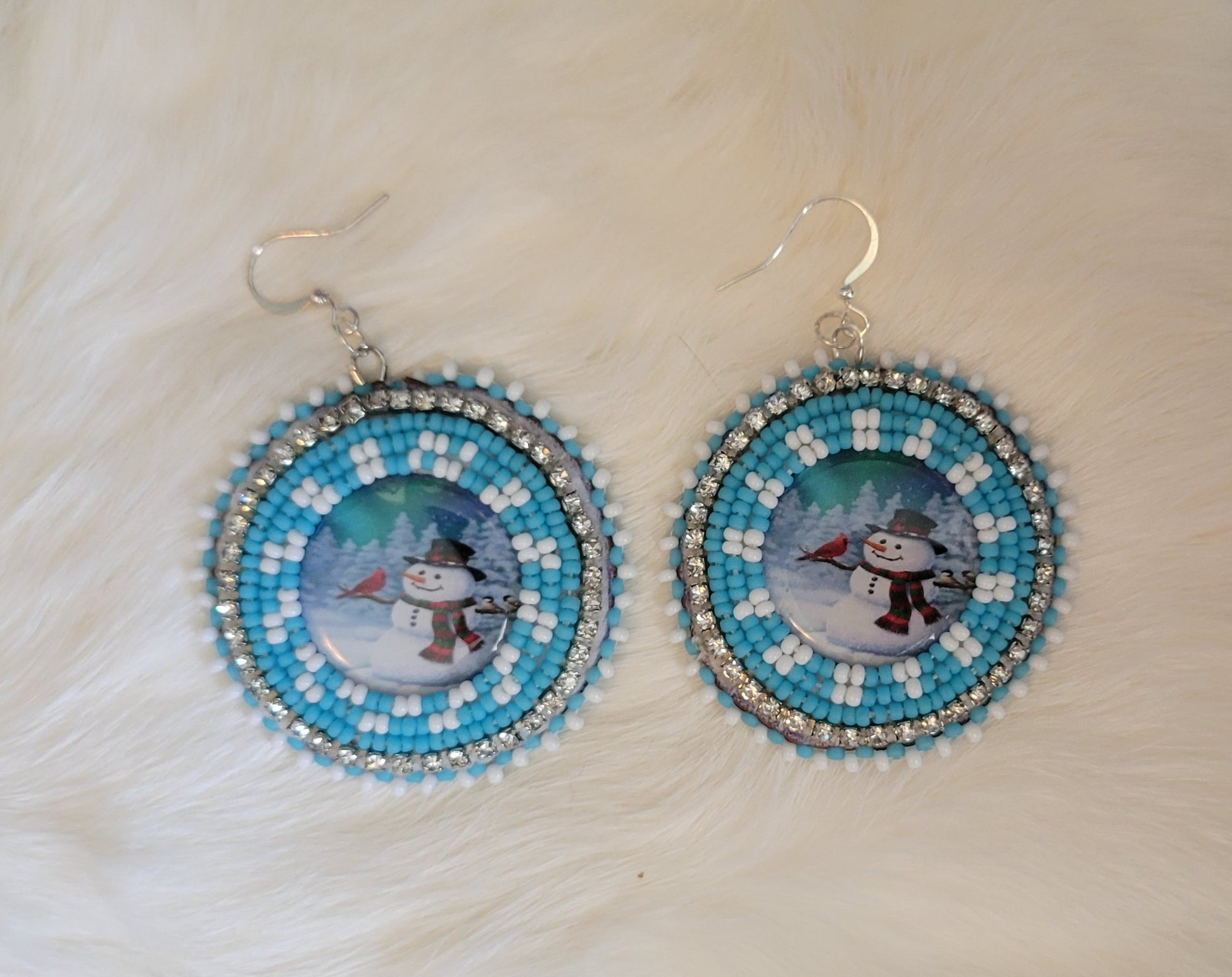 Light blue size 11 beads and white size 11 beads with rhinestone banding